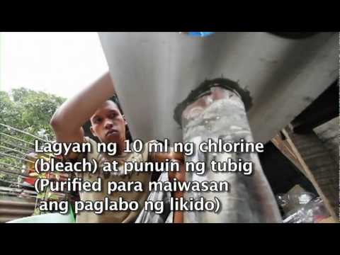 Isi botol dengan sekitar 10 ml pemutih pakaian clorine dan sisanya dengan air yang sudah disaring (untuk mengeluarkan kotoran yang mengambang di cairan).