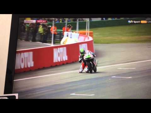 Mendekati garis finis, Ajo kehilangan kendali atas motornya. Nyaris mengalami crash, dia terlihat sangat kepayahan menjaga keseimbangan setelah terlempar dari joknya sambil menjaga motornya tetap berada di atas lintasan.
