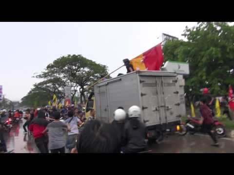 Online24, Makassar – Aksi memperingati hari Sumpah Pemuda di bawah jembatan fly over, Jalan Urip Sumoharjo, Makassar, Jumat (28/10/2016) sore, berlangsung ricuh. Pengunjuk rasa terlibat adu jotos dengan aparat kepolisian.