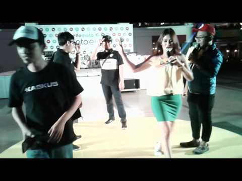 Sambil menunggu acara terakhir, yaitu pengumuman pemenang 6 smartphone kepada para pengunjung yang sudah ikut serta di kompetisi Video Box dan Voting desain, dua host yang kece badai mengajak kaskuser dan pegunjung untuk seru-seruan dengan berbagai permainan yang sudah mereka siapkan, misalnya memperagakan jadi model. Tentunya ada hadiahnya dong, yakni 1 buah Nut Mini Smart Tracker untuk setiap pengunjung yang berhasil melalui setiap tantangan yang disiapkan dua host tersebut.