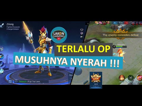 Hero yang dipake: Zilong, Build default, lama main 12 menit. Hasilnya: 14 kill, 3 mati, 8 asis, 8292 gold, MVP 11.1
