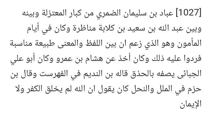 Perlu diketahui bahwa Abul-Hasan Al-Asy'ari memang sebelumnya adalah seorang Mu'tazili. Dia berguru kepada seorang 'ulama Mu'tazilah yang bernama Abu 'Ali Al-Jubba'i (w. 303 Hijriyyah / 915). Dia kemudian bertobat dan mulai menulis berbagai kitab/traktat yang menyanggah ajaran Mu'tazilah sekaligus merumuskan 'aqidah Ahlus-Sunnah menjadi sebuah kanon teologi yang sampai sekarang menjadi teologi yang paling banyak dianut oleh Sunni. Namun, tentu saja ketika Ibnu Nadim menulis tentang Asy'ari, dia memperoleh informasi tsb sebelum Al-Asy'ari mendirikan sekolah/majlis kalam-nya yang sekarang dikenal Asy'ariyyah ini.