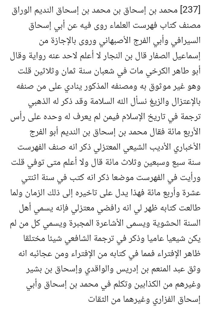 DUGAAN IBNU NADIM SEBAGAI SYI'AH OLEH IBNU HAJAR
