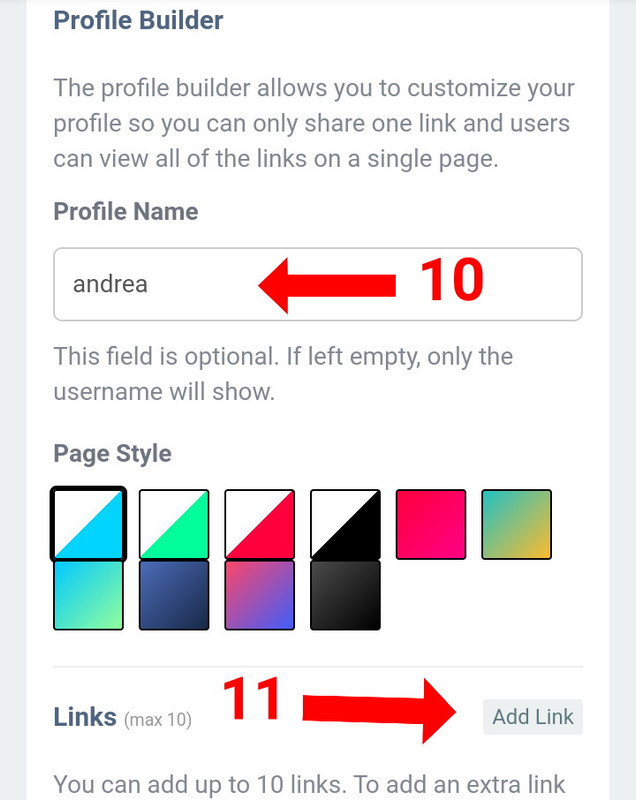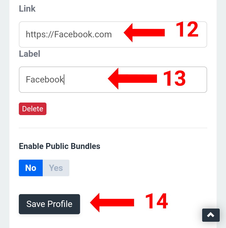 * Lanjut kalian scroll kebawah. Pada bagian ( link ) isi link tujuan, Pada bagian ( label ) isi nama pada tampilan. Jika sudah klik save profile